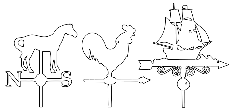 Article GB : 3 WEATHERVANES: ROOSTER BOAT HORSE