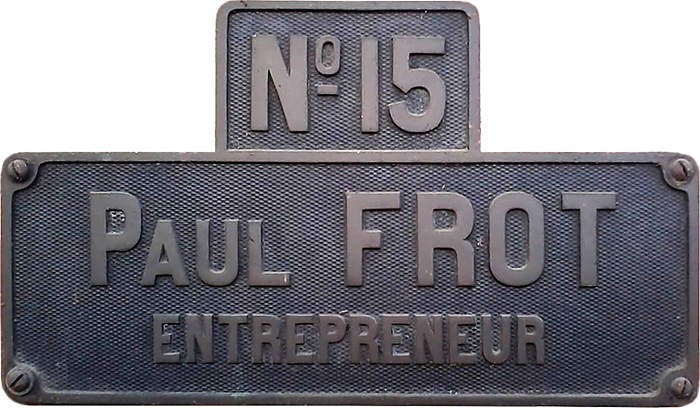 Article GB : PAUL FROT MANUFACTURER’S PLATE